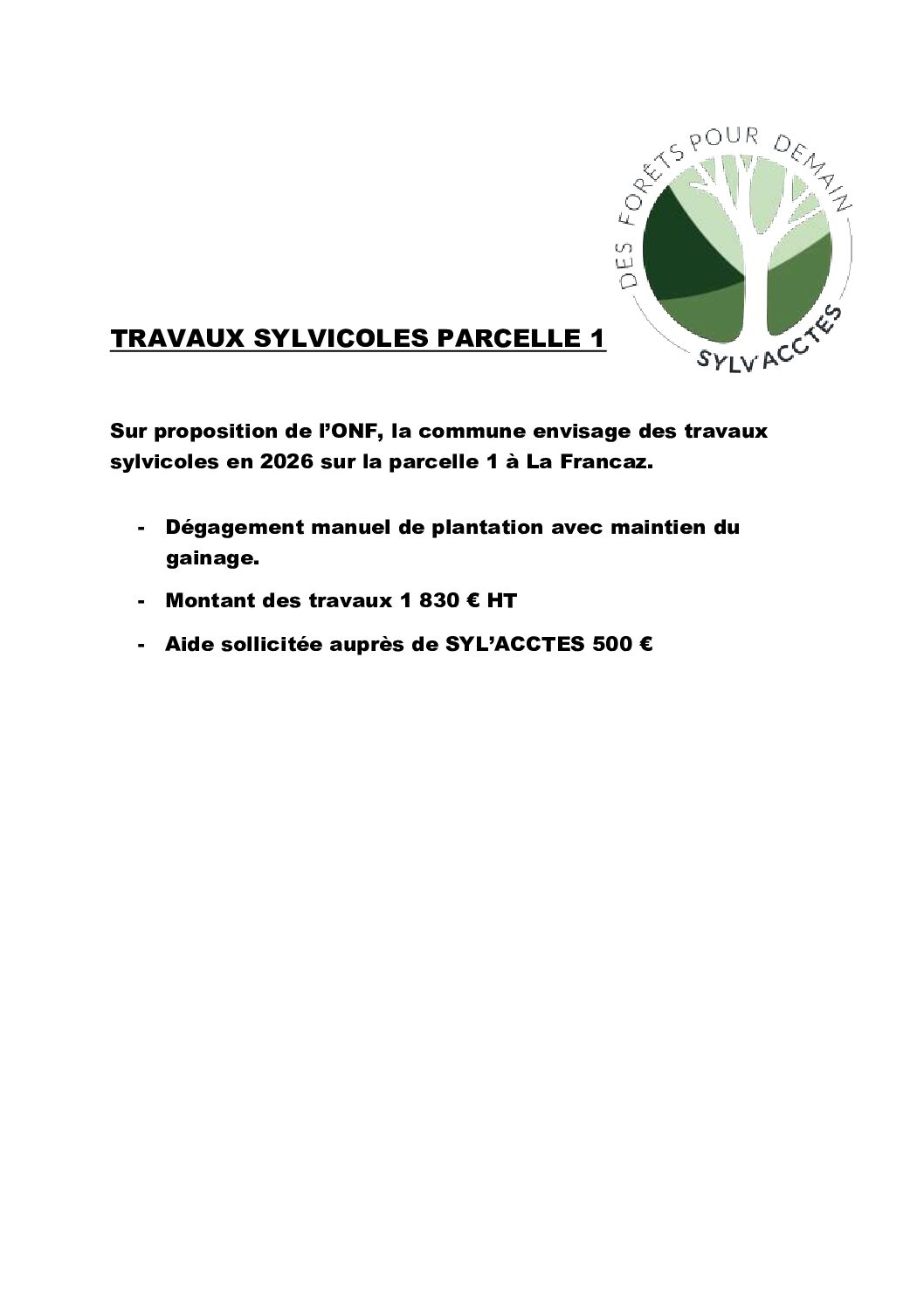 TRAVAUX SYLVICOLES 2026